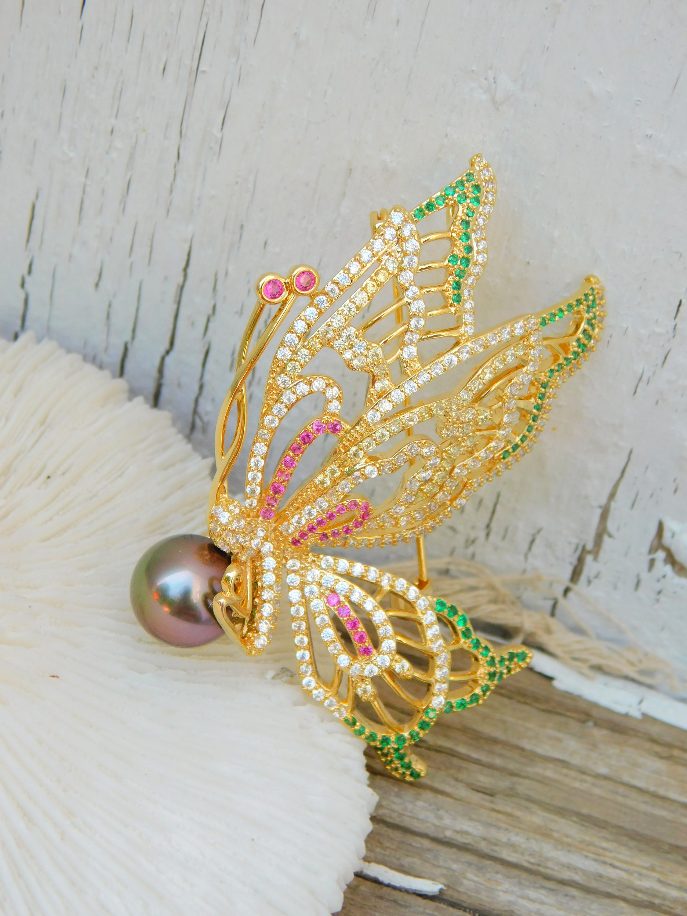 Butterfly Tahitian Pearl Brooch