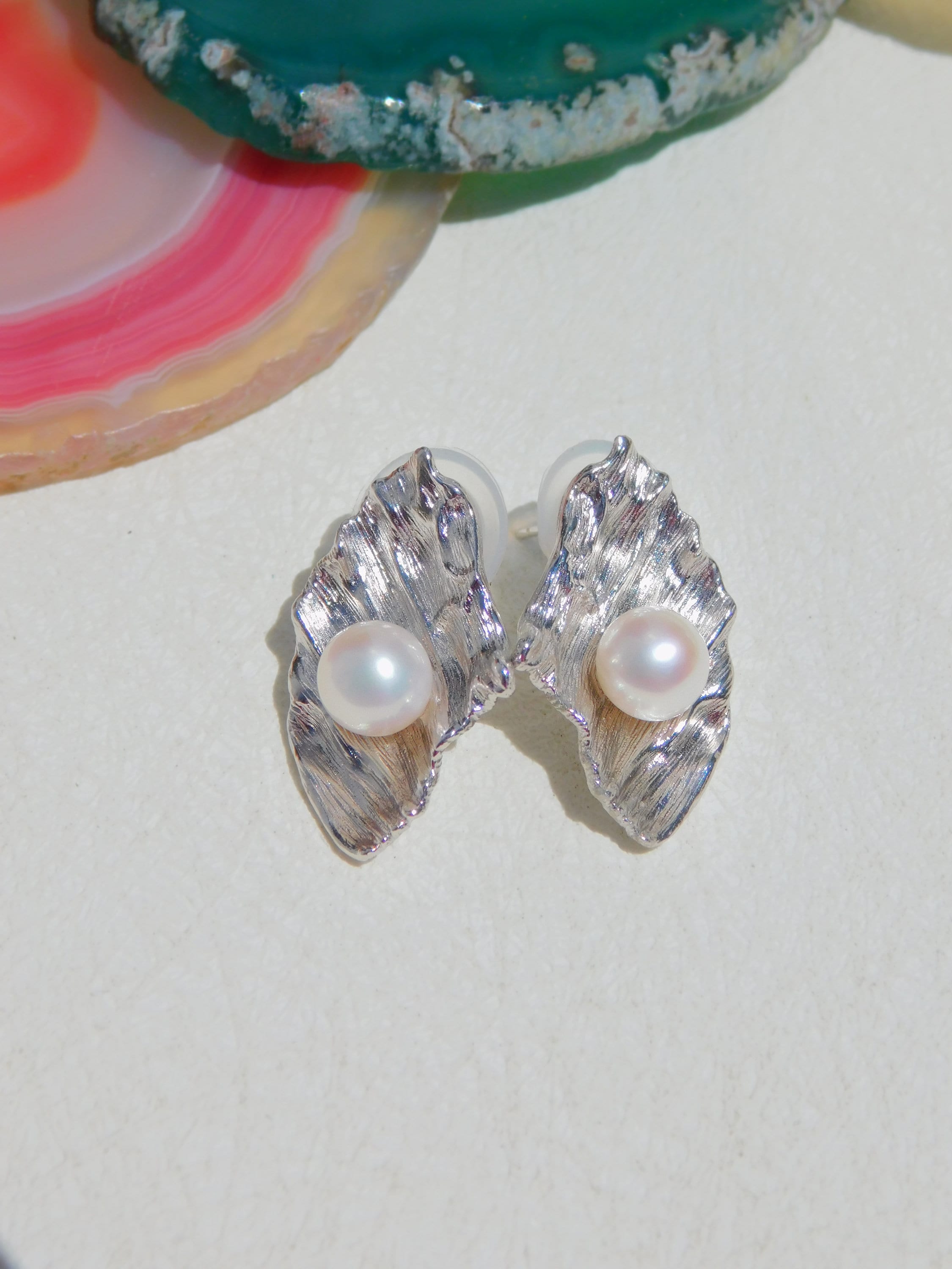 ❥ Findings: 18kt white gold plated over sterling silver, textured