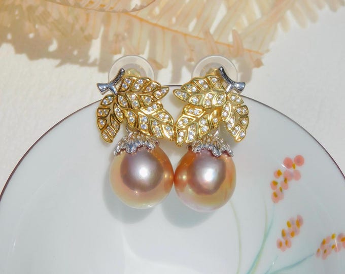 Freshwater Pearl Earrings: Peacock Design, 10.2mm, Gold Plated Silver, AAA